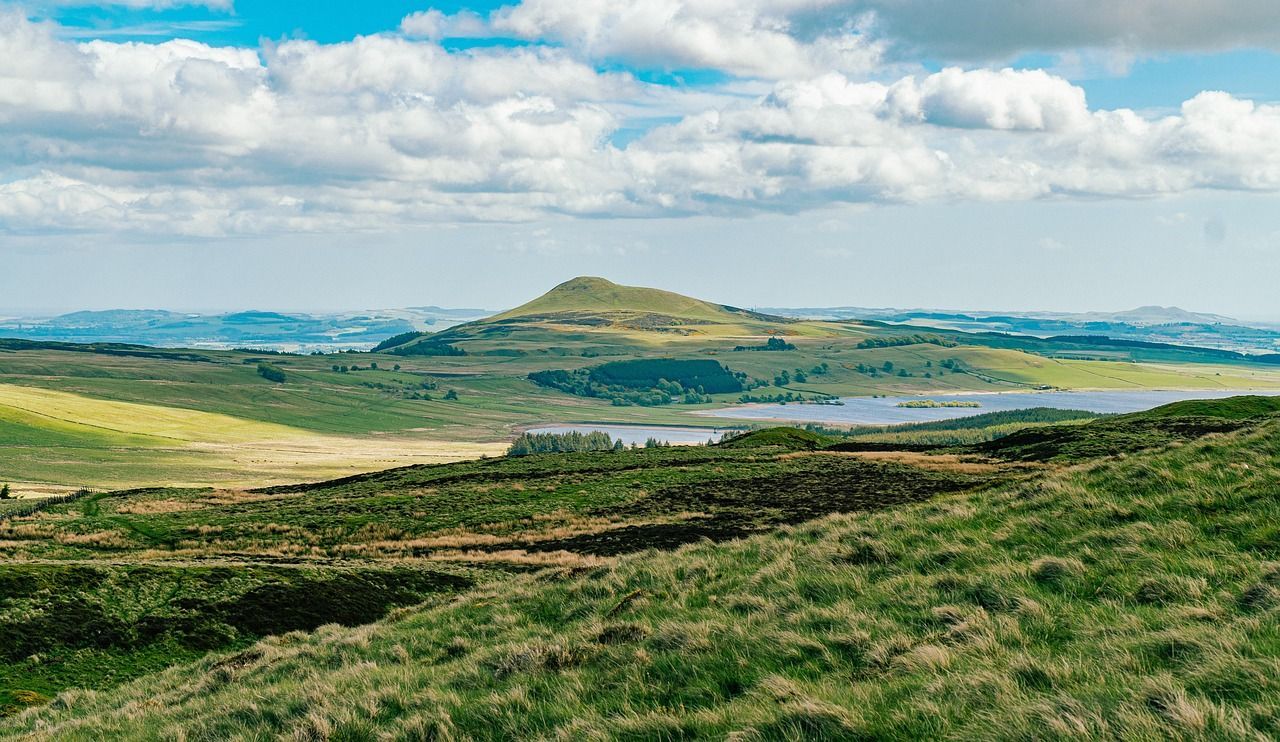 South of the Highland fault line, the land softens. The Scottish Lowlands are gentler, greener, and more densely populated, with farmland, river valleys, and wooded hills. This is the landscape of rolling fields, hedgerows, and fertile plains — areas that have supported communities for centuries. The Borders, in particular, are rich in agricultural land and dotted with ruined abbeys, reminders of Scotland’s turbulent medieval past.